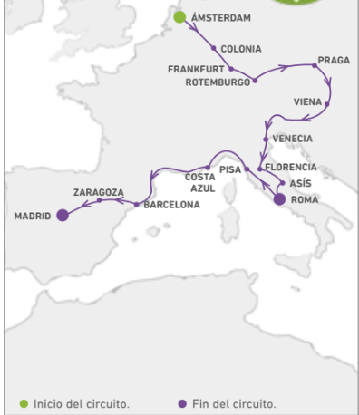 - Visita con guía local en Ámsterdam, Praga, Viena, Venecia, Florencia, Roma, Barcelona y Madrid.
